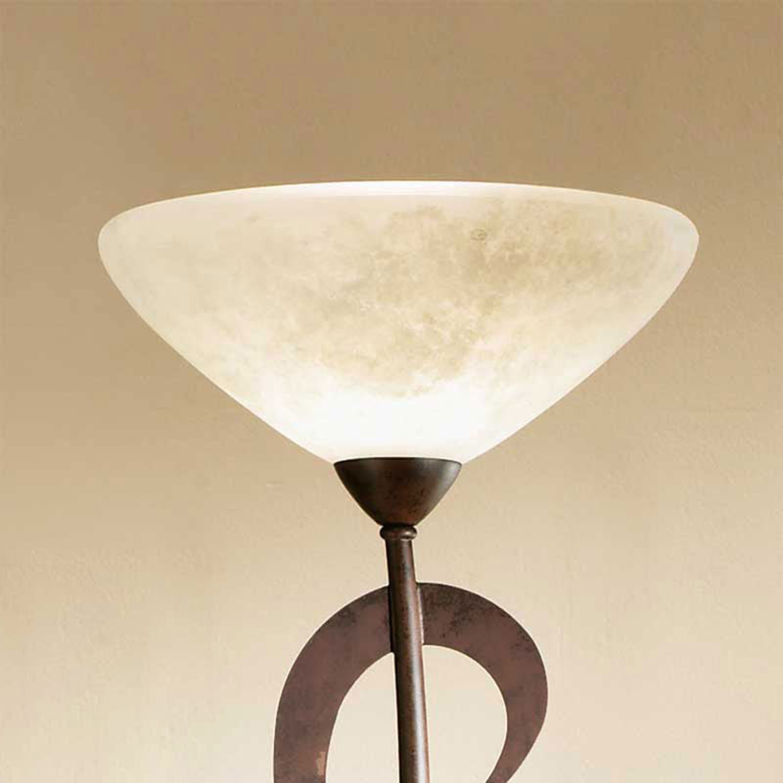 Der Deckenfluter Samuele bietet einen sehr großen Ausleuchtungsbereich. Das liegt besonders an der offenen Form und dem großen Durchmesser des Lampenschirms. Dieser strahlt sehr großflächig die Decke an, wodurch eine schöne passive Beleuchtung entsteht.