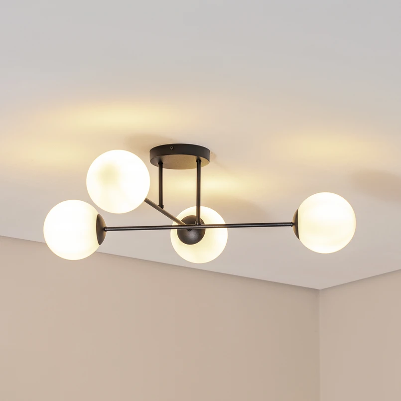 Deckenlampe Glassy, 4-flg., gekreuzt, schwarz/opal