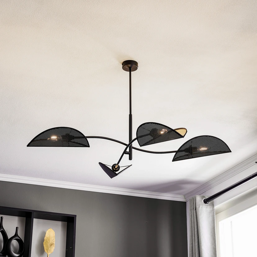Deckenlampe Lotus, schwarz/gold, 4-flammig