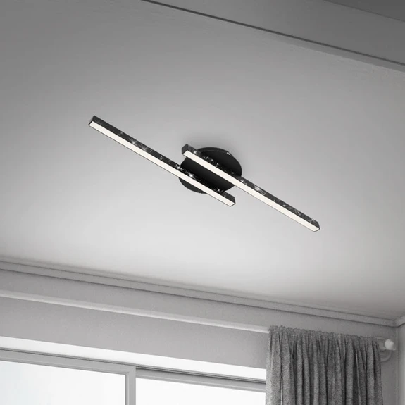 Deckenlampe Rey, Glitzereffekt, 2-flammig, schwarz