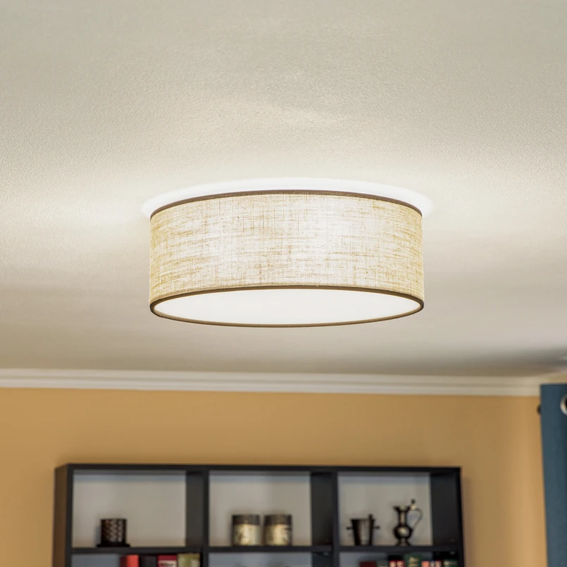 Deckenlampe Tubo, Textilschirm, beige, rund