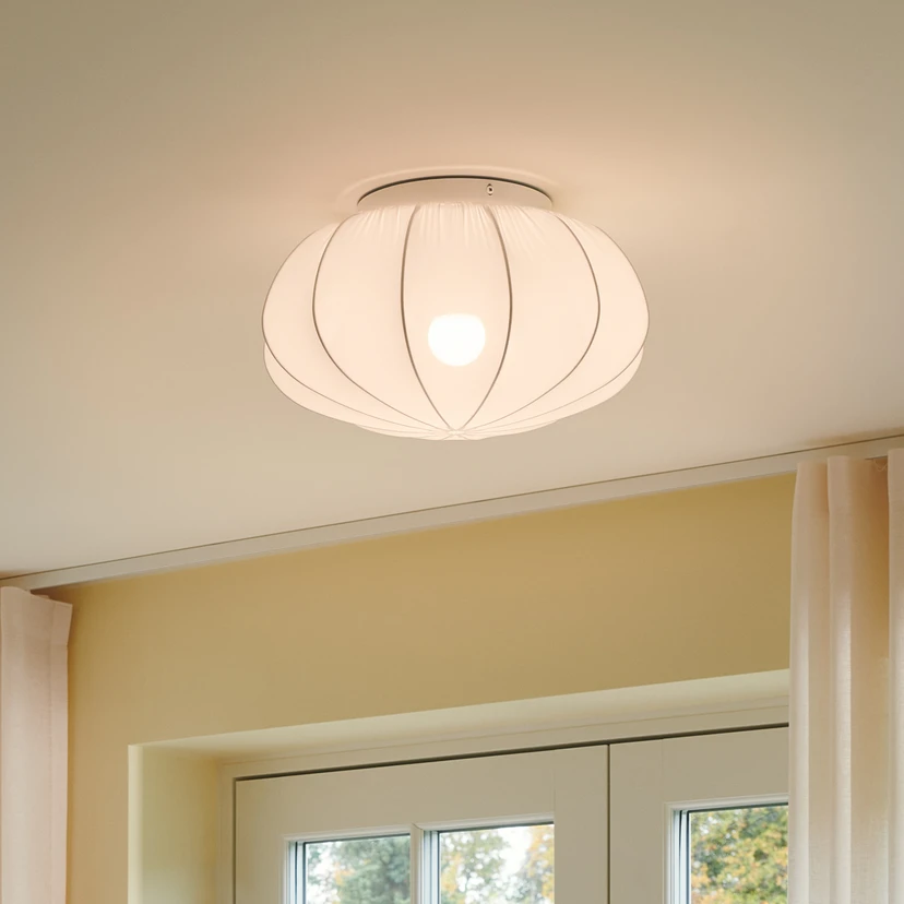 Deckenleuchte Aeron mit weißem Stoff bezogenem Metall