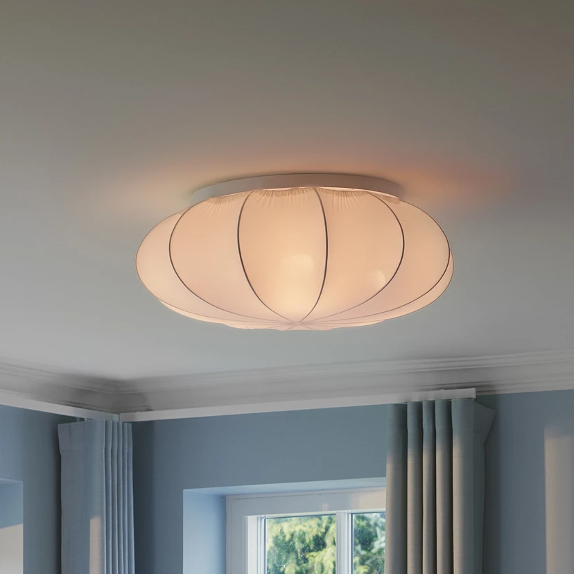 Deckenleuchte Aeron mit weißem Stoff bezogenem Metall
