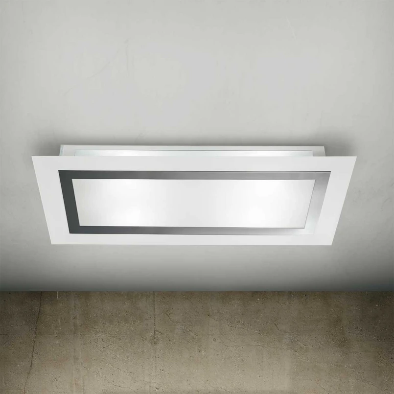 Die weiße Deckenleuchte Frame ist sehr modern und in der Farbgebung schlicht gehalten. Ein besonders schöner Effekt bei der Leuchte ist die indirekte Lichtabstrahlung. Der Metallrahmen ist in gebürsteter Stahloptik gefertigt.