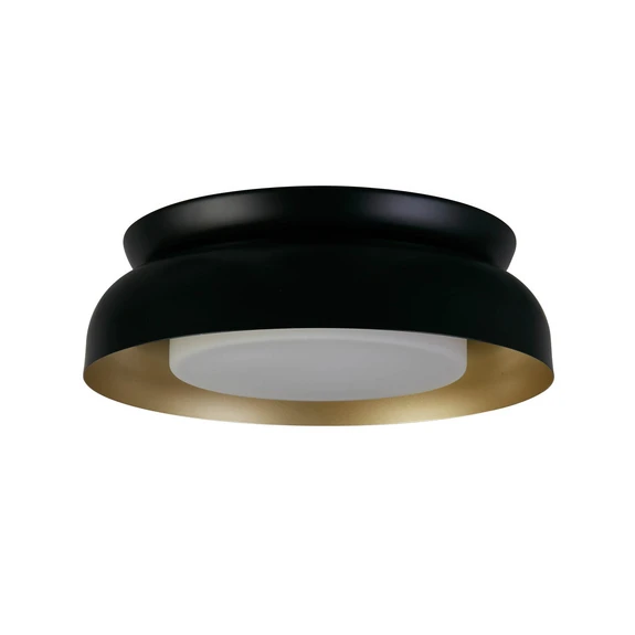 Schwarzes und goldfarbenes Metall verschmelzen bei der Deckenleuchte Kendal zu einem schönen Leuchtenschirm. Der mattierte Diffusor im Metallschirm besteht aus Glas und wirft das Licht blendfrei und gleichmäßig nach unten. Die Deckenleuche Kendal ist eine moderne Ergänzung für jedes Interieur und lässt sich zur Grundbeleuchtung vieler Räume nutzen, vom Wohnraum über den Flur oder die Küche bis zum Schlafzimmer.