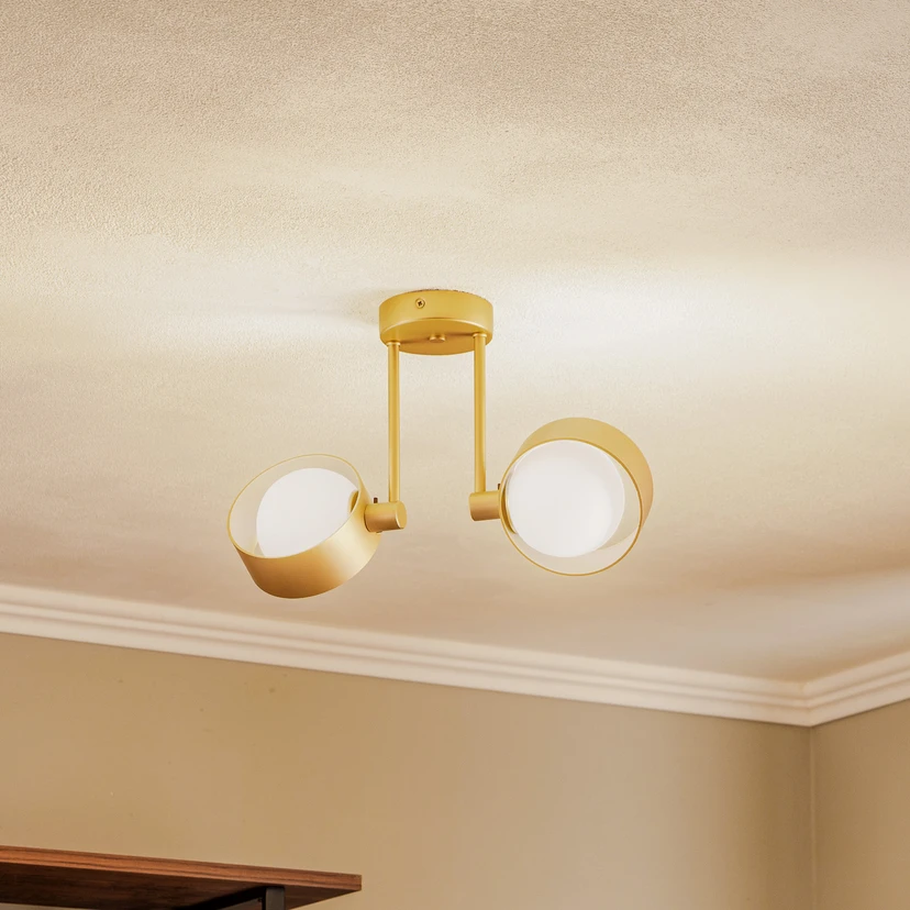 Deckenleuchte Mado, Opalglas/messing, zweiflammig