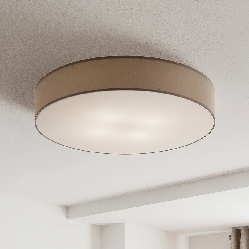 Die Deckenleuchte Rondo aus Textil in einem warmen Braunton vereint ästhetisches Design mit funktionaler Beleuchtung. Ihr zeitloses Erscheinungsbild fügt sich nahtlos in verschiedene Einrichtungsstile ein und sorgt für eine angenehme Lichtverteilung im Raum. Der hochwertige Textilschirm verleiht der Leuchte eine elegante Note und schafft eine behagliche Atmosphäre. Dank der durchdachten Konstruktion ist die Rondo nicht nur ein optisches Highlight, sondern auch ein zuverlässiger Begleiter für den Alltag.