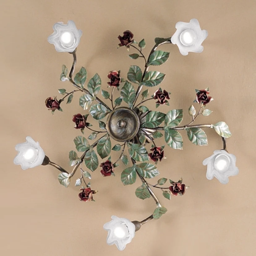 Deckenleuchte ROSAIO mit handgefertigtem Rosendekor in Rot und Grün