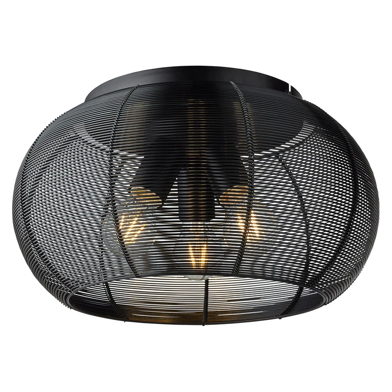 Die Deckenleuchte Sambo besteht aus einem runden Metallschirm im Käfig-Design. Durch die Zwischenräume zwischen den Metallelementen dringt das Licht der eingesetzten Leuchtmittel hindurch und kann so nach allen Seiten den Raum erhellen. Als Leuchtmittel empfehlen sich hier besonders die dekorativen Filament-Leuchtmittel, wie sie über das Zubehör gekauft werden können.