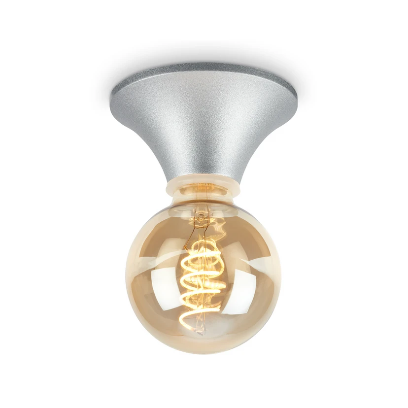 Tepel lässt sich als Decken- oder Wandleuchte verwenden und ist nicht nur in trockenen Wohn- und Aufenthaltsräumen, sondern auch in Bad- und Spabereichen einsetzbar (IP44). Das minimalistisch-moderne Design aus Kunststoff und Metall in konkaver, nach unten zur Fassung verjüngter Form kommt ohne Schirm aus und lässt sich somit ideal mit einem dekorativen Leuchtmittel komplettieren.