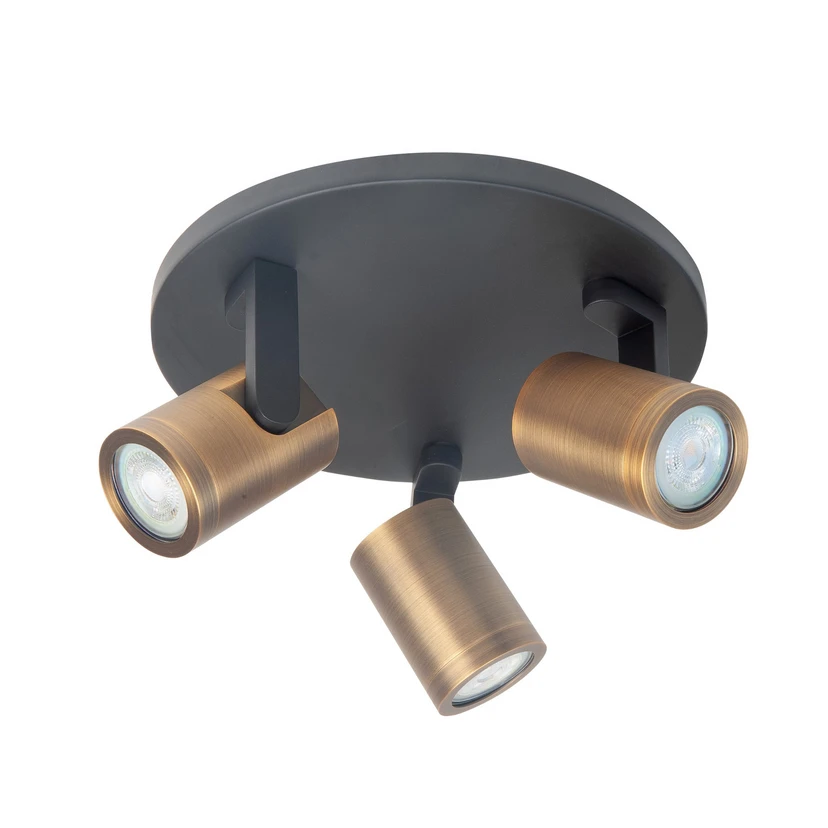 Deckenstrahler Halo, schwarz/messing brüniert Ø 25 cm 3-flg.