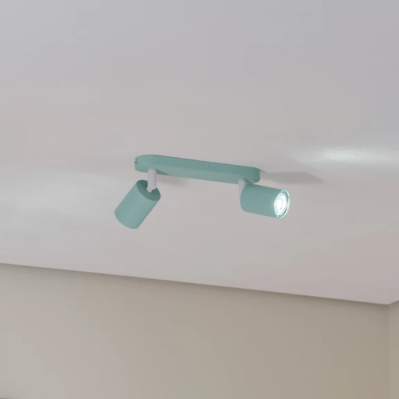 Der Deckenstrahler Livia in mintgrün vereint stilvolles Design mit hoher Funktionalität. Gefertigt aus robustem Stahl und Kunststoff, bietet dieser Strahler eine langlebige und zuverlässige Beleuchtungslösung. Die zwei GU10-Fassungen ermöglichen eine gezielte Ausleuchtung, die sich ideal für den Einsatz im Kinderzimmer eignet. Die Fertigung in Europa garantiert höchste Qualitätsstandards und eine sorgfältige Verarbeitung.
