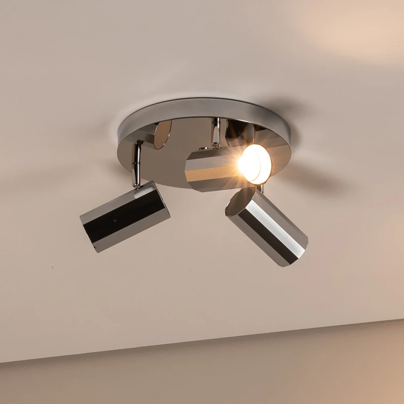 Moderner Deckenstrahler Oktano in Chrom mit drei schwenkbaren Köpfen