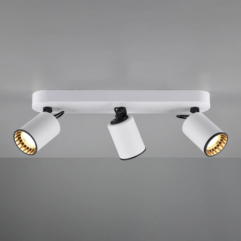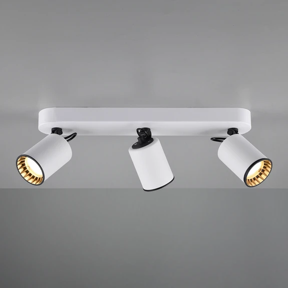 Dreiflammiger Deckenstrahler Pago aus lackiertem Metall mit Kunststoffschirmen