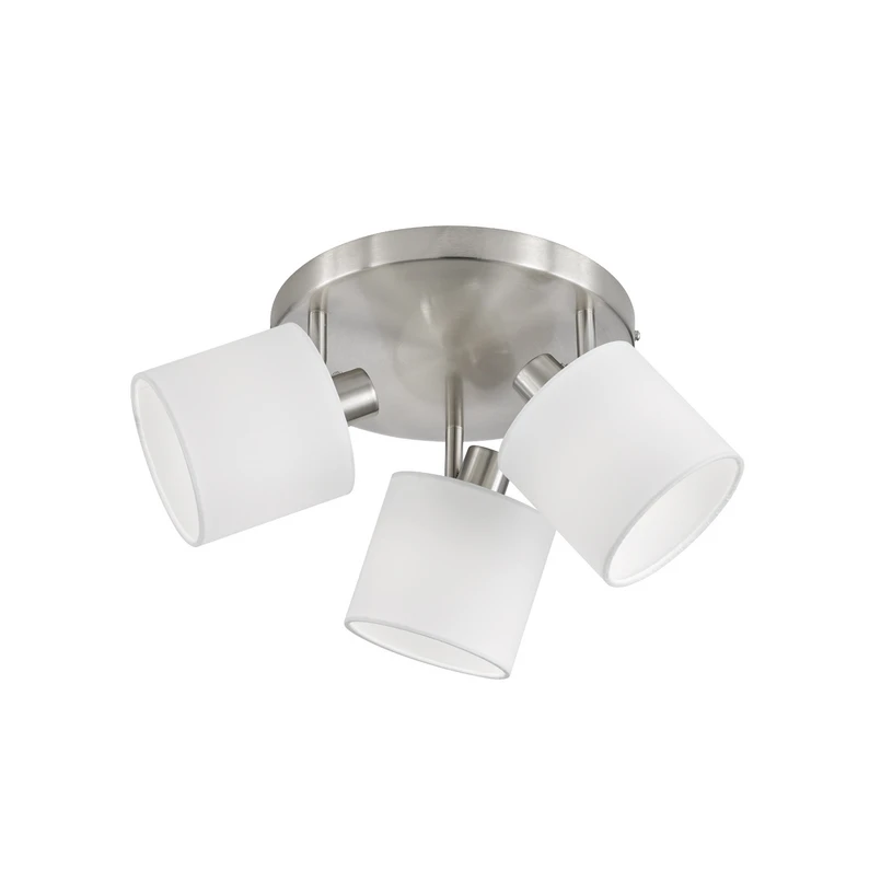 Deckenstrahler Tommy, nickel/weiß, Ø 25 cm, 3-flg. Stoff