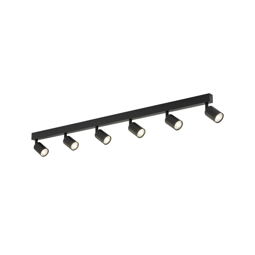 Deckenstrahler Top, schwarz, 127 cm, 6-flg., Metall, GU10
