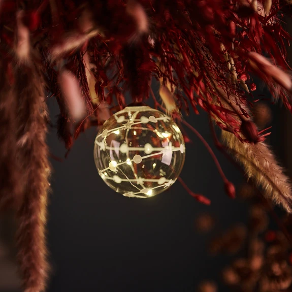 Batteriebetrieb: 1 x AAA (exklusive); auf Grund der Fertigung aus mundgeblasenem Glas und der Handbemalung ist jedes Exemplar ein Unikat