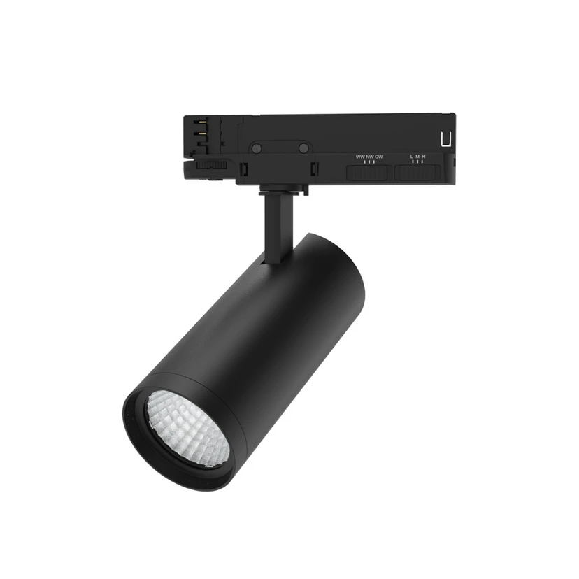 Der moderne LED-Schienenstrahler SLIMtrack aus Aluminiumdruckguss ist mit einem zylindrischen Kopf ausgestattet, der über ein passives Kühlsystem verfügt. Der mittelbreite, symmetrische Ausstrahlwinkel von 36° eignet sich einerseits zur Bereichsbeleuchtung; dank der Ausrichtbarkeit, der freien Platzierbarkeit in der 3-Phasen-Schiene und der guten Farbwiedergabe lassen sich auch Verkaufsflächen angemessen ausleuchten.