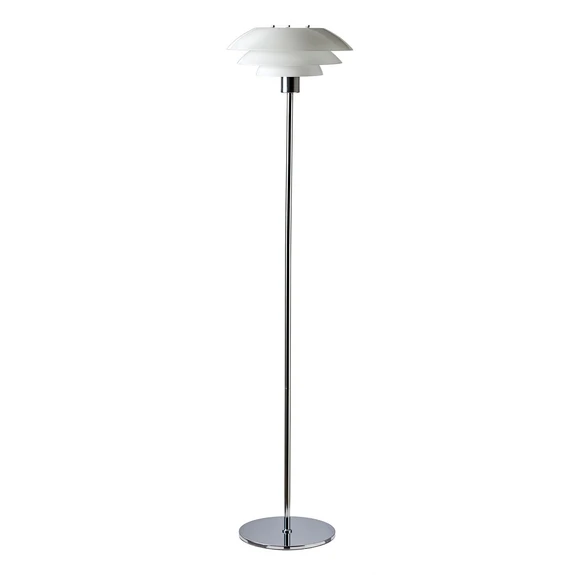 Stehleuchte DL31 mit Schirm aus opalweißem Glas und Chromgestell