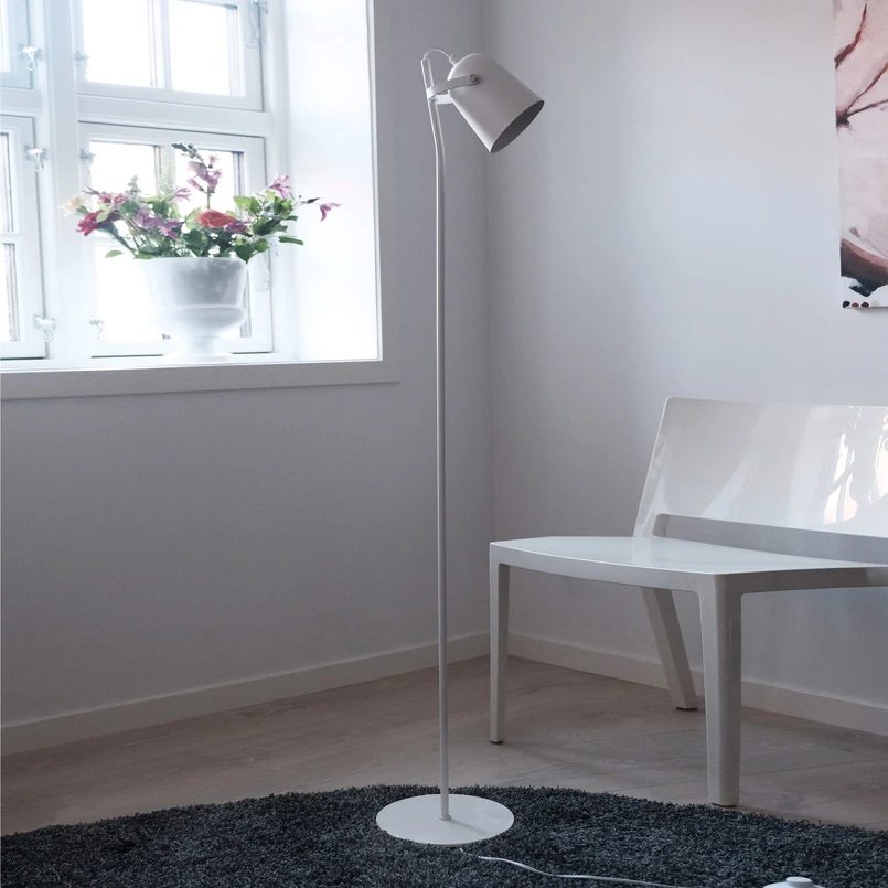 Überall dort, wo gezielte Beleuchtung benötigt wird, bietet sich die Stehleuchte Oslo als Zusatzlichtquelle an. Die zierlich im nordischen Design gestaltete Leuchte ist mit einem Metallschirm ausgestattet, der sich in seinem Haltebügel auf- und abwärts schwenken lässt, so dass der Lichtkegel auf den gewünschten Bereich justiert werden kann. Praktisch, schlicht, vielseitig und funktional - die Stehleuchte passt in jedes Interieur und beleuchtet mit dem Einsatz einer LED-Lampe auch energiesparend (nicht inklusive).