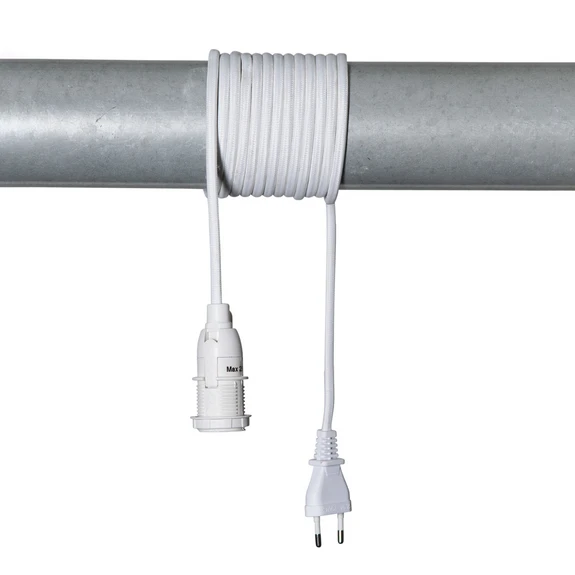 Die E14-Fassung Lacy ist mit einem 350 cm langen Textilkabel ausgestattet. Am Ende des Kabels ist ein flacher Euro-Stecker angebracht. Die Fassung besteht aus Kunststoff und das Kabel eignet sich aufgrund seiner Länge hervorragend für dekorative Zwecke.