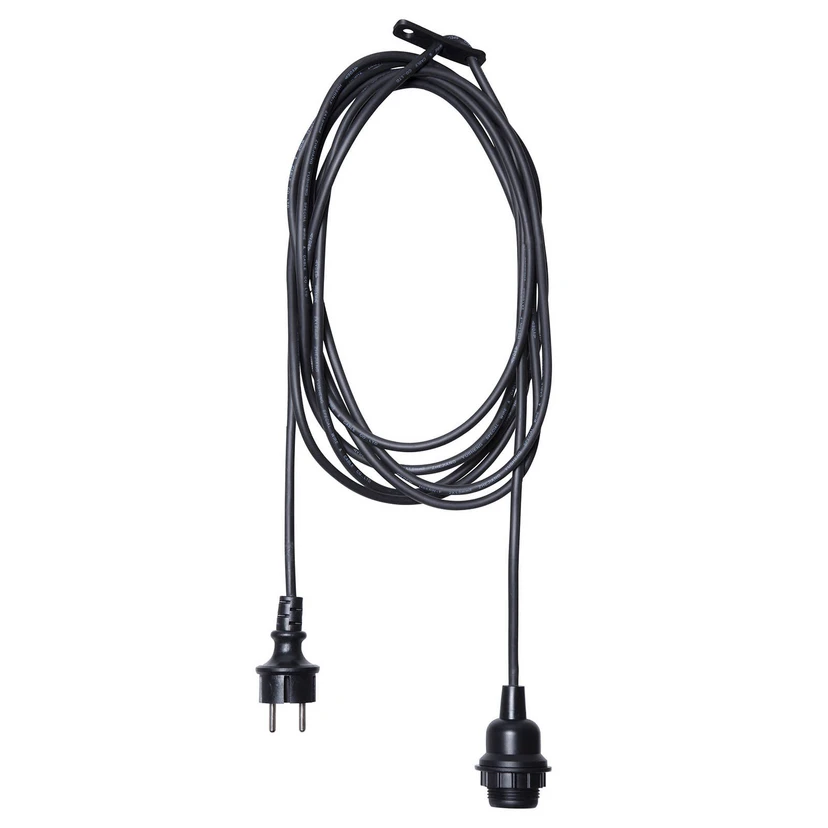 Die E27-Fassung Ute ist mit einem langen Kabel ausgestattet. Am Ende des Kabels ist ein SchuKo-Stecker angebracht. Das Kabel eignet sich aufgrund seiner Länge hervorragend für dekorative Zwecke und als Hängeleuchte für den Außenbereich.
