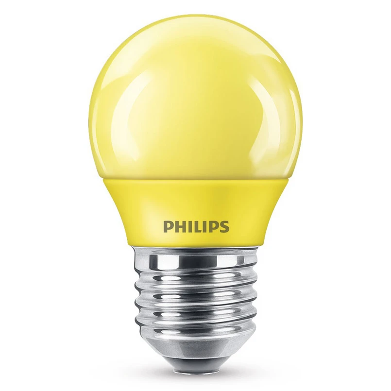 Die farbige LED-Lampe mit E27-Sockel mit einem tropfenförmigen Kolben aus Kunststoff kann neben dem Einsatz in Lichterketten auch in Leuchten - zum Beispiel Tisch- oder Stehleuchten - eingedreht werden, um farbige Lichtakzente im Innenräumen zu setzen.