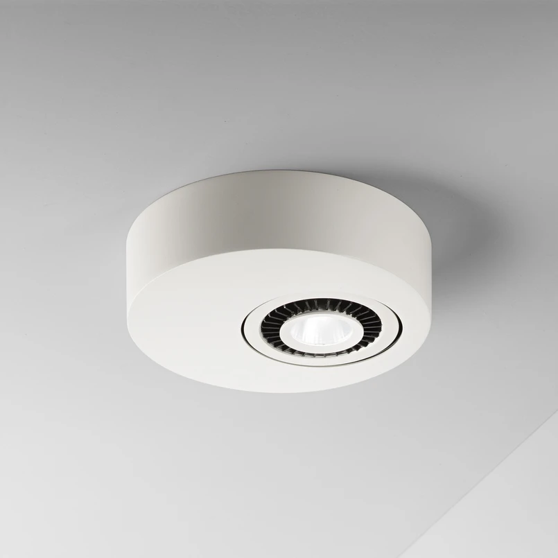 Die runde LED-Deckenleuchte Geo in extra flacher Bauform ist mit einem drehbaren und nach zwei Seiten um 90° schwenkbaren Spot ausgestattet und bietet sich für viele Bereiche an. Das Aufbaugehäuse der Leuchte, in dem der LED-Treiber verbaut wurde, besteht aus Aluminium. In Fluren oder auch in Wohnräumen, im Hotel oder in gewerblichen Bereichen bietet sich die LED-Deckenleuchte Geo zur fokussierten Beleuchtung an.