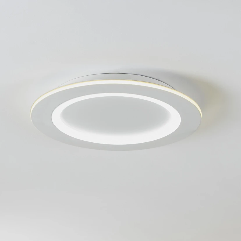 Die LED Deckenleuchte Padrogiano-Z ist ein Produkt aus dem Smart Home Sortiment connect.Z Sie ist aus weißem Metall und einem großen Kunststoff-Ring gefertigt. Die integrierten LEDs spenden angenehmes Licht, das sich dank der RGB- und CCT-Farbwechselfunktion nach Wunsch einstellen lässt. Der Innenteil der Leuchte spendet weiße Beleuchtung, die sich zwischen warmweißem, universalweißem und tageslichtweißem Licht einstellen lässt, die im Außenring rundum verbauten LEDs bieten eine Vielzahl an RGB Lichtfarben. Sowohl der äußere, als auch der innere Ring können separat ein- und ausgeschaltet sowie gedimmt werden. Die Steuerung der Deckenlampe erfolgt via kostenloser App (AwoX Home Control), womit der Zugriff auf weitere Komfortfunktionen wie Dimmen, Timer, Anwesenheitssimulation und vielen mehr ermöglicht wird. Die Ansteuerung des LED Panels erfolgt über Bluetooth sowie ZigBee 3.0 und ermöglicht zudem die Steuerung über kompatible Sprachassistenten. Eine alternative Bedienung der Deckenleuchte ist über die separat erhältliche Fernbedienung möglich. Die runde Leuchte fügt sich in eine Vielzahl von Einrichtungsstilen ein und bietet eine stimmungsvolle Beleuchtung für jeden Raum – egal ob in der Küche, im Wohnzimmer, Schlafzimmer, Flur oder Büro.