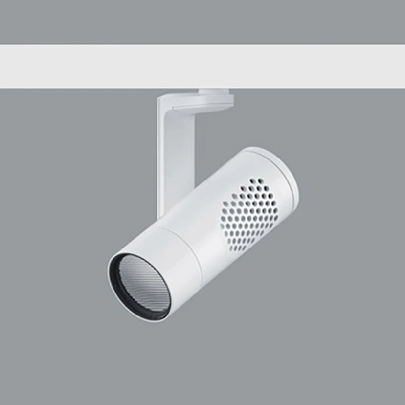 Dank der besonders breiten Lichtstreuung ist der LED-Strahler Eclipse von ERCO die ideale Wahl zur Ausstattung einer 3-Phasen-Schiene, wenn große Flächen in Verkaufs-, Geschäfts-, Aufenthalts- und Empfangsräumen ausgeleuchtet werden sollen. Hierzu sind im zylindrischen, aus Aluminium gefertigten Kopf neben den High-Power-LEDs eine spezielle Kollimatoroptik aus optischem Polymer und eine Darklight-Linse verbaut. Der beweglich befestigte Ausleger ermöglicht ein Schwenken des Kopfs um 270° und ein drehen am Schienenadapter um 360°. Zudem ist Eclipse S mit der Casambi-App auf dem Smartphone/Tablet smart steuerbar.