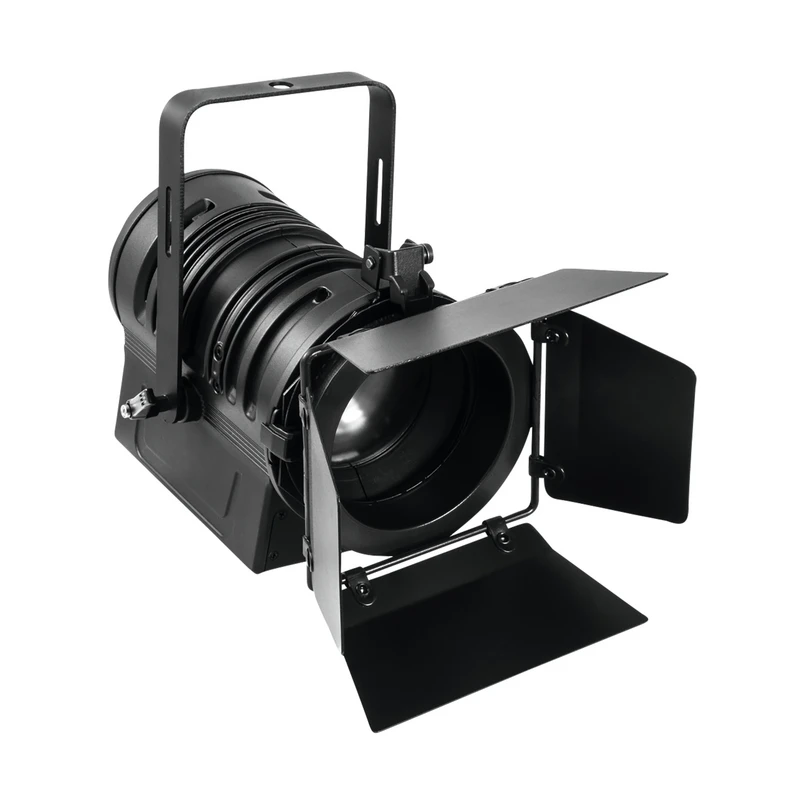 Der lüfterlose Scheinwerfer mit warmweißen LEDs ist zum DMX-gesteuerten Betrieb oder im Standalone-Betrieb mit Master-/Slave-Funktion nutzbar. Er ist mit einem Haltebügel zur Montage mit Arretiermöglichkeit sowie mit Gummifüßen zum Aufstellen ausgestattet und wird mit drehbaren Flügelbegrenzern und Farbfilterrahmen geliefert.