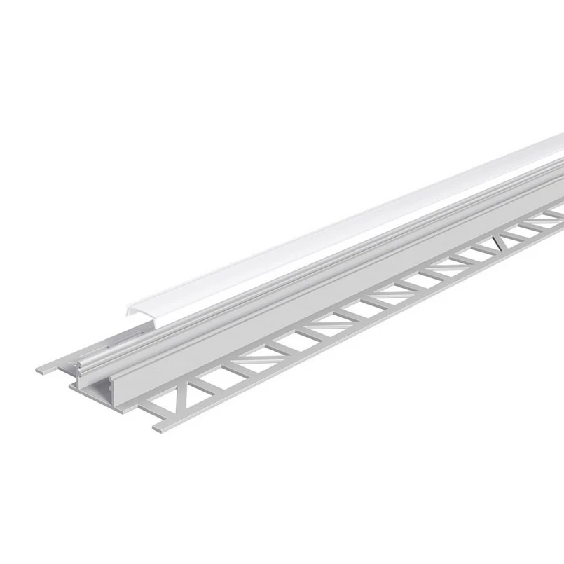 Das Fliesenprofil aus eloxiertem Aluminium ist passend für Fliesen bis zu einer Stärke von 8 mm. Es ist für LED-Strips mit einer Breite bis zu 14 mm und Leistung bis zu 15 W je Meter geeignet. Inklusive opaler Abdeckung aus Polycarbonat.