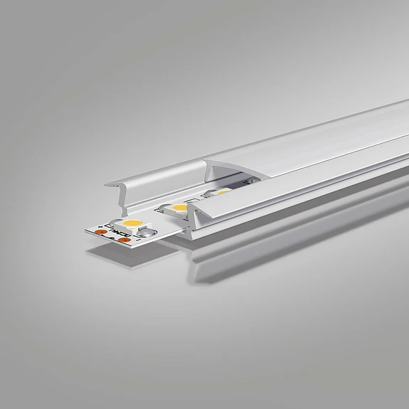 Das Aluminium-T-Profil wird mit passender, opaler Abdeckung aus Polycarbonat geliefert und eignet sich dank der Bauweise ideal für Möbel, wie zum Beispiel Vitrinen oder Küchenschränke. Das Profil fungiert dabei als Kühlkörper beim Einsatz von LED-Strips, kann aber auch als praktischer Kabelkanal genutzt werden.