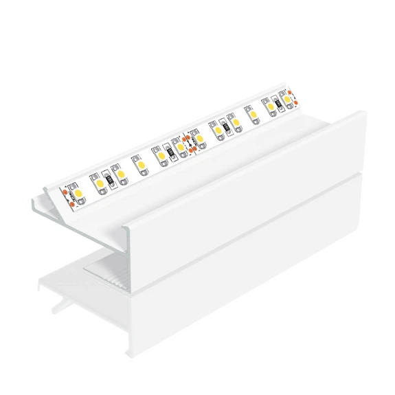 Das Aluminium-Profil APTBH dient zur indirekten Beleuchtung über die Decke an Lichtvouten. Es eignet sich für Gipsplatten mit einer Stärke von 12,5 mm und LED-Strips bis 18 mm Breite und max. 30 W je Meter. Nach fertiger Installation ist der LED-Strip vom Raum aus nicht mehr sichtbar. Die untere Kante des Profils wird großflächig mit der Gipsplatte und Gewebeeinlage verspachtelt und bietet dank der gerillten Oberfläche einen besonders guten Halt. Die Vorderseite kann passend zur Wand/Decke/Verkleidung bestrichen werden und bewirkt eine optische Aufdopplung der Sichtfläche.