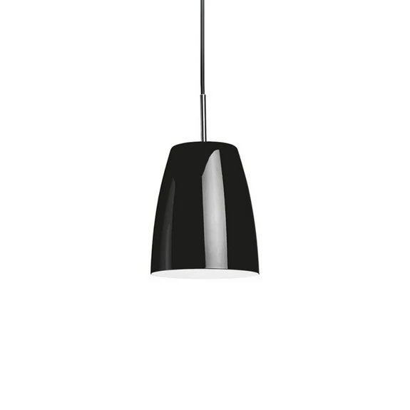 Die einflammige Hängeleuchte Terso ist ein eleganter Lichtspender insbesondere für moderne Geschäfts- Empfangs- und Durchgangsräume. Ihr aus Aluminium gefertigter Schirm vereint die Formen von Zylinder und Kegelstumpf mit fließendem, gewölbtem Übergang. Die Außenseite ist in glänzend schwarz lackiert, während die Innenseite zugunsten einer effektiven Lichtreflexion in Weiß gehalten ist. Das universalweiße Licht des integrierten LED-Moduls wird direkt nach unten ausgestrahlt. Das Kabel mit schwarzem Textilmantel ist an einer Aufnahme mit Zugentlastung in glänzender Chromoptik am Schirm befestigt. Zur Höhenjustierung bei der Montage kann das überschüssige Kabel im schwarzen Baldachin verstaut werden.