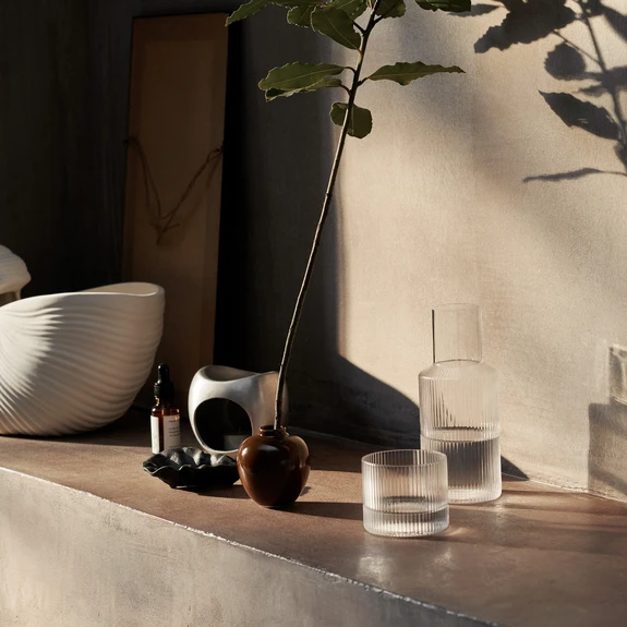 Diese niedrigen, mundgeblasenen Gläser Ripple Low mit ihrer unverwechselbaren, schön geriffelten Oberfläche kommen im Viererset. Die vertikalen Linien verleihen der schlichten, klassischen Form eine ausdrucksstarke Raffinesse und die Gläser eignen sich perfekt für das zwanglose Abendgedeck. Für eine einheitliche Gestaltung des Gedecks können Sie sie mit den anderen Stücken aus der Ripple-Glaskollektion von ferm LIVING (siehe Zubehör) kombinieren.