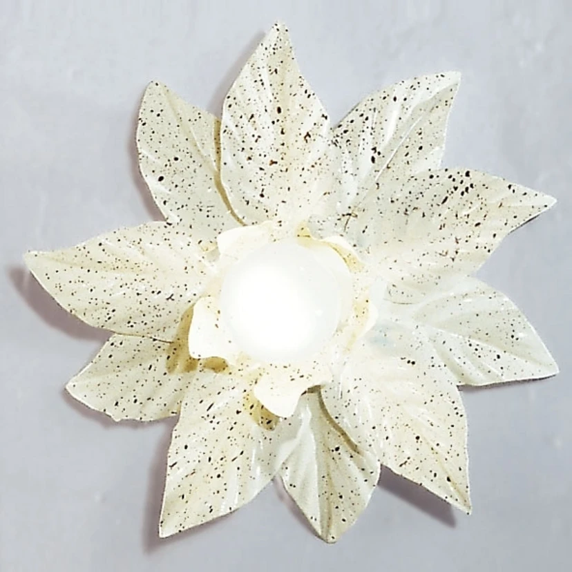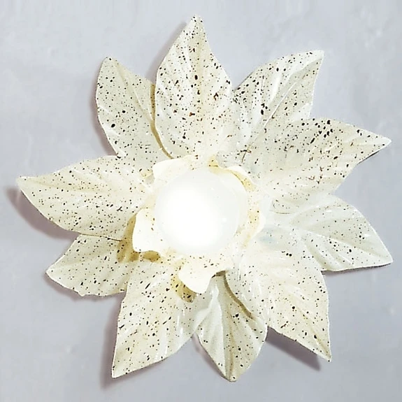Aus der Mitte ihrer „Blüte“ heraus strahlt diese Wandleuchte einen ganz besonderen Glanz aus. Die weißen „Blütenblätter“ geben dem Licht eine ganz eigene Note. Die Leuchte aus teils italienischer, teils deutscher Produktion fügt sich beispielsweise wunderbar in das rustikale Ambiente eines Landhauses ein.