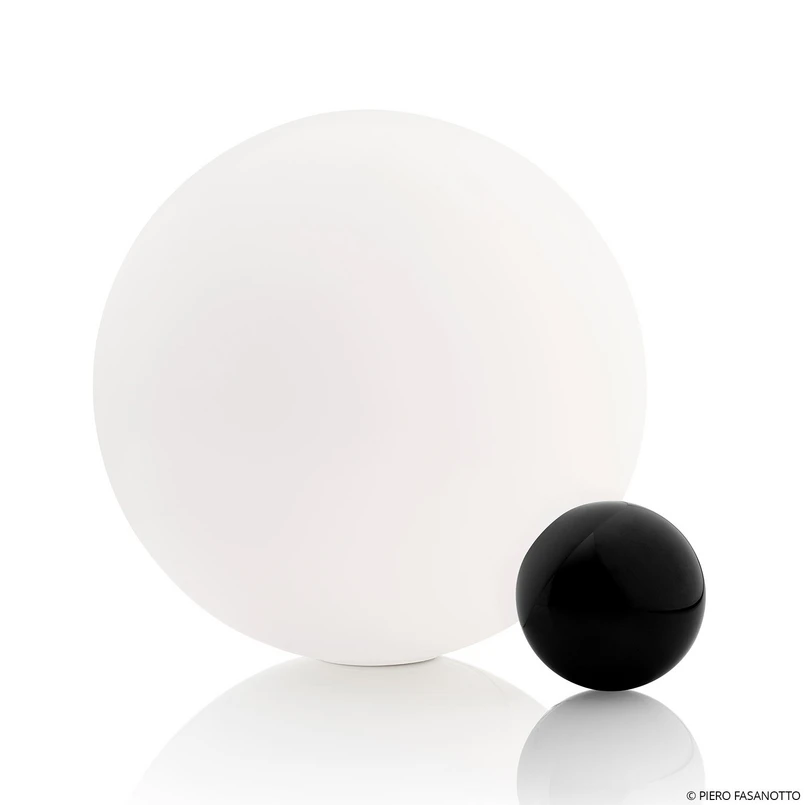 Diese Tischleuchte, deren ästhetisches Design von Michael Anastassiades stammt, der seit mehreren Jahren auch für den italienischen Leuchtenhersteller FLOS dekorative Lichtobjekte kreiert, besticht mit ihrer ungewöhnlichen Gestaltung: Sie besteht aus einer großen Kugel aus geblasenem Opalglas, die von einer kleinen Kugel aus Metall berührt wird. Die in der kleinen Kugel verbaute LED beleuchtet die große Glaskugel indirekt und erzeugt homogenes Licht. Ein Zusatzlichtspender, der durch sein extravagantes Design auch ausgeschaltet sofort in den Blick fällt und beleuchtet für einen tollen Lichteffekt sorgt.