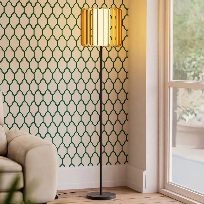 Stehleuchte Viva mit Lamellenschirm aus Holz