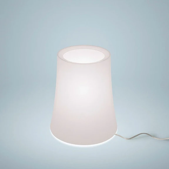 Das Designerpaar Ludovica und Roberto Palomba erweitert mit dieser Leuchtenkreation seine Tischleuchtenserie, die im Jahr 2011 mit der mittlerweile zu den Designikonen zählenden Tischleuchte Birdie Tavolo ihren Anfang nahm. An die klassische Birdie erinnert vor allem der leicht ausgestellt geformte Schirm aus Polycarbonat. Er lässt das Licht rundherum durchscheinen und gibt es auch nach oben durch die Öffnung an die Umgebung ab. Birdie Zero steht auf einem für den Betrachter nicht sichtbaren Fuß aus Metall und ist mit einem Ein-Aus-Schalter am transparenten Kabel bestückt, so dass sie bequem bedient werden kann. Eine minimalistische gestaltete Tischleuchte, die - z. B. auf einer Kommode im Wohnzimmer oder auf dem Nachttisch platziert - für stimmungsvolles Zusatzlicht sorgt.