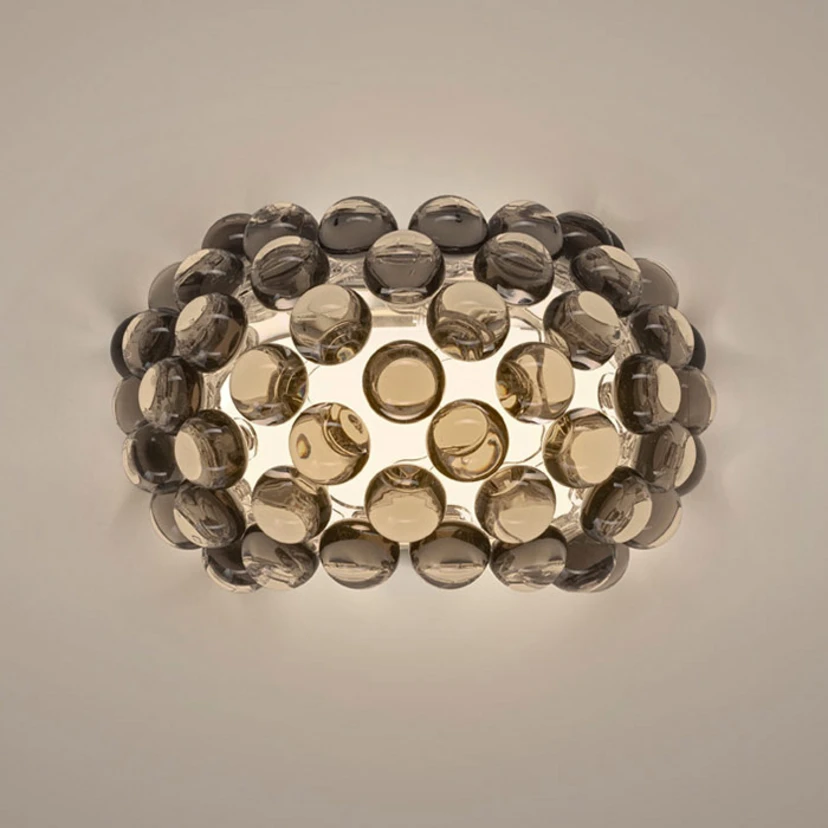 Das Geheimnis der besonderen Optik von Caboche Plus ist die Kombination der funkelnden Perlen mit dem gleichmäßig strahlenden Hintergrund. Letzterer wird durch einen opalen, mundgeblasenen Glas-Innenschirm erzielt. An diesem sind die Perlen mit einem im Betrieb unsichtbaren Band aus transparentem Kunststoff ("twist lock") befestigt.