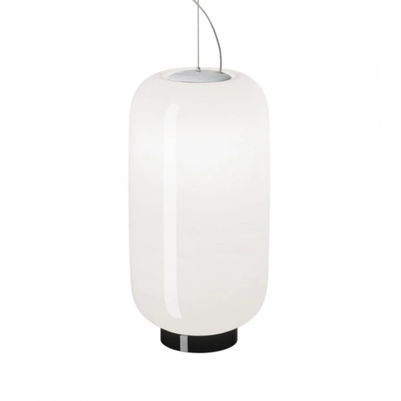 Entgegen der ursprünglichen Versionen der Hängeleuchte Chouchin, bei denen das Glas farbig lackiert und nur der untere Rand am Schirmende weiß belassen ist, wurde die Farbgestaltung bei der Reverse-Version umgekehrt. Hier ist der zylindrische, abgerundete Schirm aus geblasenem Glas opal belassen und lediglich der untere Ring bzw. die Kappe stellen einen farbigen Kontrast dar. Diese Gestaltung bewirkt, dass das Licht der Leuchte Chouchin Reverse 2 sowohl nach unten, als auch diffus rundum durch den Schirm hindurch in den Raum strahlt. Die Sanftheit des Lichts der gläsernen Pendelleuchte Chouchin überzeugt nicht nur im heimischen Wohnzimmer, sondern auch in Restaurants, Bars oder Cafés.