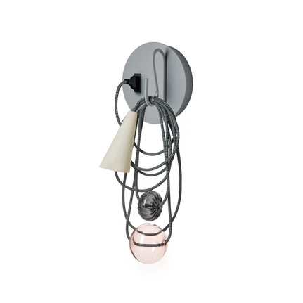 Durch ihr auffälliges Design wird die LED-Wandleuchte Filo zu einem ganz besonderen Blickfang in der Wohnumgebung und kommt ideal im Wohnzimmer oder im Flurbereich zur Geltung. Dank ihrer unterschiedlichen Farbvarianten fügt sie sich problemlos in verschiedene Einrichtungsstile ein - entweder als dezenter Lichtspender oder als bunte Leuchte, die für einen farbenfrohen Akzent im Wohnbereich sorgt. Filo setzt sich aus unterschiedlichen Elementen und Materialien zusammen. Das Gestell besteht aus Metall, das Kabel verfügt über eine Textilummantelung und zwei dekorative Objekte aus mundgeblasenem und handgefertigtem Glas sowie einen weißen Schirm aus Porzellan, der das Leuchtmittel umschließt und das warme Licht blendfrei an die Umgebung strahlt.