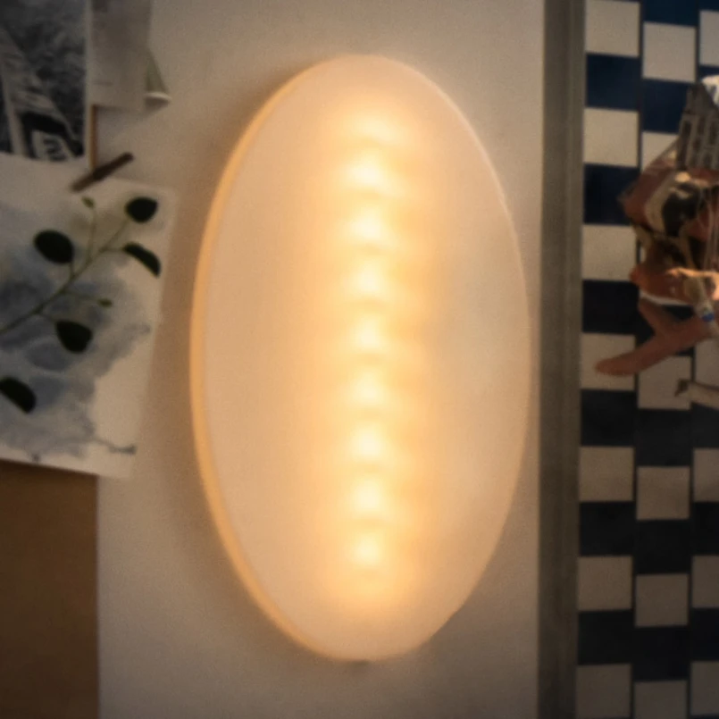 Superficie ist eine Neuinterpretation der klassischen Wandleuchte, welche normalerweise rund oder eckig daherkommt. Diese Wandleuchte überzeugt mit einer ovalen Form und einer kunstvoll gestalteten Oberfläche. Die Oberfläche besteht aus weißem PMMA, welches die Wandhalterung aus Aluminium vollständig umgibt. Der Kunststoff weist zudem ein Muster aus Konkaven und Konvexen auf, wodurch die Leuchte wie ein futuristisches Wandgemälde wirkt. In die Wandhalterung sind leistungsstarke LEDs integriert, deren warmweißes Licht durch den weißen Kunststoff abgeblendet und so gleichmäßig an die Umgebung abgegeben wird. Die strukturierte Oberfläche der Leuchte wird in Verbindung mit dem intensiven Licht zu einem interessanten Spiel aus Licht und Schatten, sodass die Wandleuchte zu einem absoluten Highlight im Raum wird.