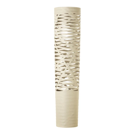 Eine zylinderförmige Lichtskulptur aus mit Expoxidharz beschichtetem Glasfaserband - das ist die Bodenleuchte Tress media aus dem Hause Foscarini. Inspiriert von der verführerischen Form eines geflochtenen Zopfes, entwarf der Industriedesigner Marc Sadler die Leuchtenserie Tress im Jahr 2008.
