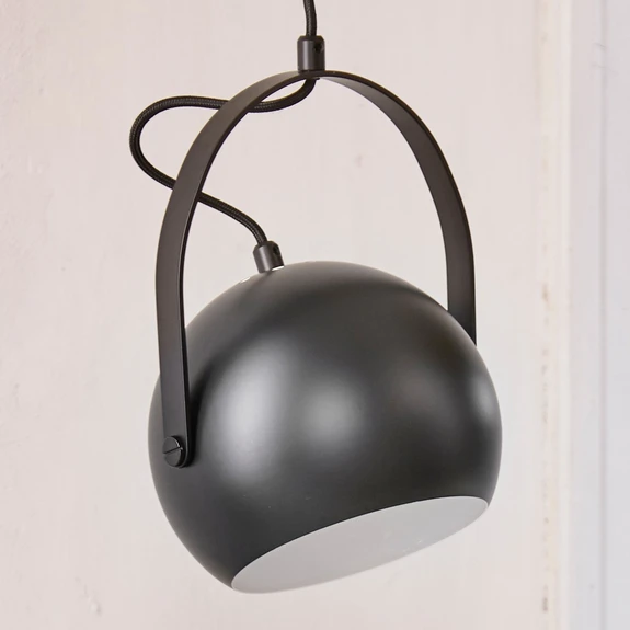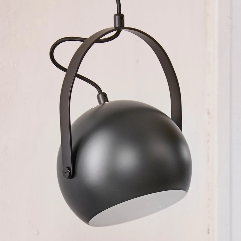 Der Originalentwurf der Hängeleuchte Ball W. Handle stammt von Benny Frandsen aus dem Jahr 1972. Im Jahr 2014 erfuhr die Hängeleuchte mit dem Griff eine Auffrischung. Die Hängeleuchte eignet sich für viele Beleuchtungssituationen und lässt sich durch die Veränderbarkeit der Schirmausrichtung immer wieder neu auf die jeweiligen Bedürfnisse ausrichten. Mit schwarzem, textilummanteltem Kabel bestückt.