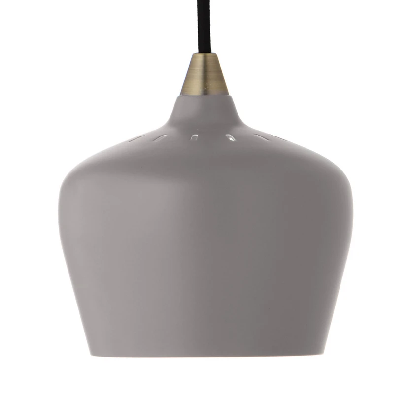 Diese Hängeleuchte aus dem Hause Frandsen ist ideal für die Ausleuchtung von Esstischen und Küchentheken geeignet. Der Schirm ist aus Metall gearbeitet und sorgt für eine abwärts gerichtete Lichtabgabe mit großflächiger Streuung. Gleichzeitig wird über einen kleinen Ring aus Löchern an der Oberseite diffuses Licht nach oben gestrahlt, was ein gemütliches Ambiente bewirkt. Cohen ist mit einem Baldachin in Leuchtenfarbe sowie textilummantelter Kabelabhängung ausgestattet.