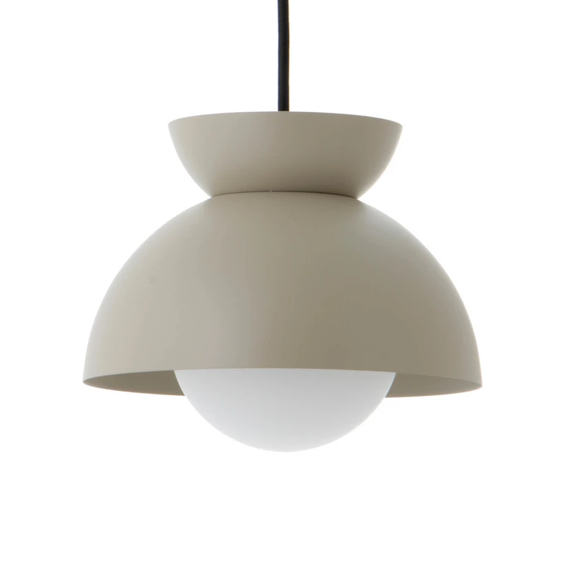 Sie besteht aus drei unterschiedlichen Halbkuppeln, die in umgekehrter Weise zueinander angeordnet sind. Die oberste kleine Halbkuppel besitzt diskrete, versteckte Öffnungen, die das Licht indirekt nach oben abgeben. Nach unten hin strahlt die Pendelleuchte Butterfly durch die opalweiße Glaskuppel, die als Diffusor dient und eine besondere Lichtstimmung erzeugt. Zusammen mit der matten Farbgebung bildet das Design eine Leuchte, die in einer Vielzahl von Umgebungen zum Einsatz kommen kann, wie zum Beispiel oberhalb von kleinen Tischen oder Kommoden.