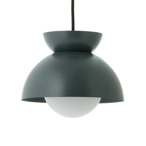 Sie besteht aus drei unterschiedlichen Halbkuppeln, die in umgekehrter Weise zueinander angeordnet sind. Die oberste kleine Halbkuppel besitzt diskrete, versteckte Öffnungen, die das Licht indirekt nach oben abgeben. Nach unten hin strahlt die Pendelleuchte Butterfly durch die opalweiße Glaskuppel, die als Diffusor dient und eine besondere Lichtstimmung erzeugt. Zusammen mit der matten Farbgebung bildet das Design eine Leuchte, die in einer Vielzahl von Umgebungen zum Einsatz kommen kann, wie zum Beispiel oberhalb von kleinen Tischen oder Kommoden.