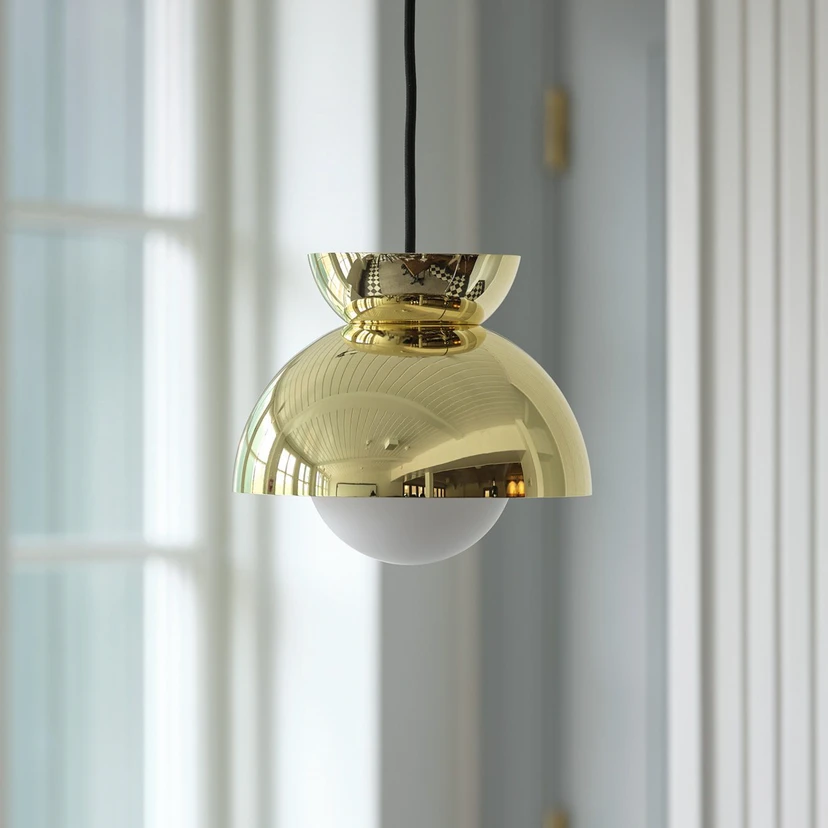 Sie besteht aus drei unterschiedlichen Halbkuppeln, die in umgekehrter Weise zueinander angeordnet sind. Die oberste kleine Halbkuppel besitzt diskrete, versteckte Öffnungen, die das Licht indirekt nach oben abgeben. Nach unten hin strahlt die Pendelleuchte Butterfly durch die opalweiße Glaskuppel, die als Diffusor dient und eine besondere Lichtstimmung erzeugt. Zusammen mit der matten Farbgebung bildet das Design eine Leuchte, die in einer Vielzahl von Umgebungen zum Einsatz kommen kann, wie zum Beispiel oberhalb von kleinen Tischen oder Kommoden.